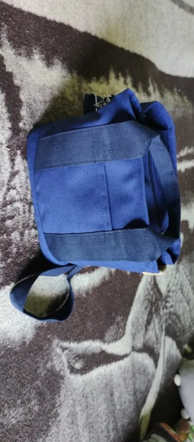 It is very pretty, it is identical to how it appears in the photo, the fabric is a kind of soft denim that stands firm when you stop the bag, at least that's how I see it and the color is the same, the strap and a small pin also came